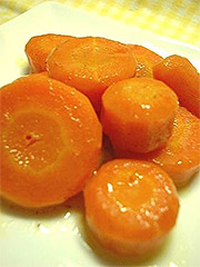 つやつや、甘~い、にんじんグラッセが、電子レンジで簡単に出来上がります。付け合わせにも便利ですよ。